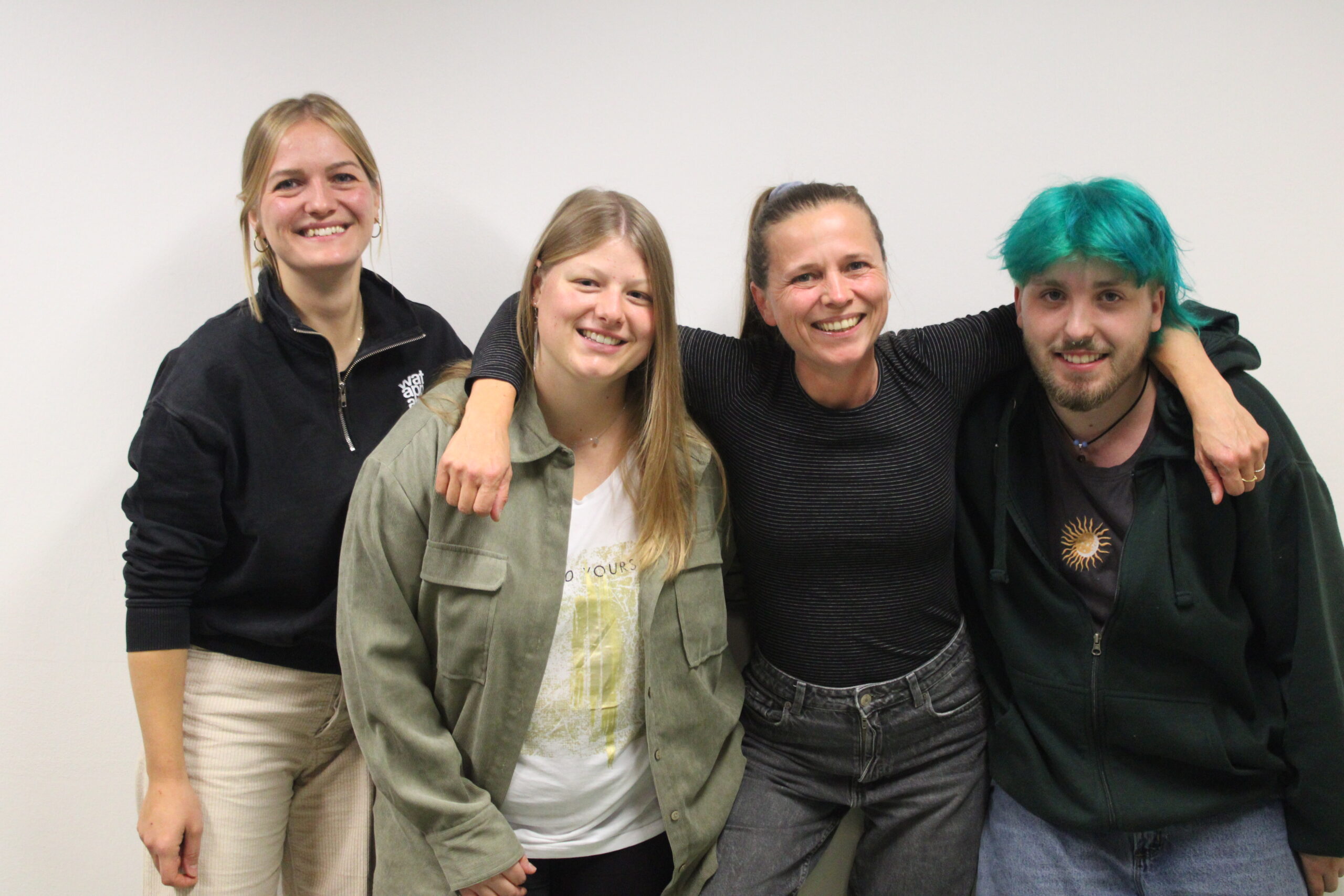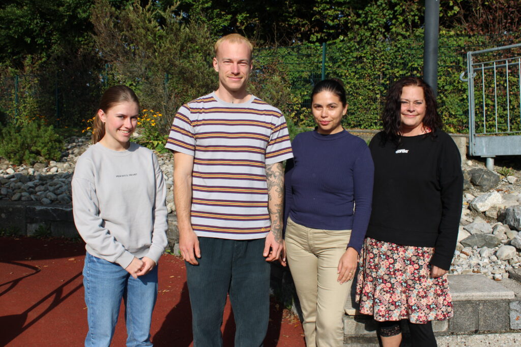 Rubena Strumm (Fachkraft), Lisa Oelsner (Individualbegleitung), Ellen Becker (Kinderpflegerin), Luis Seitz (HEP-Azubi)